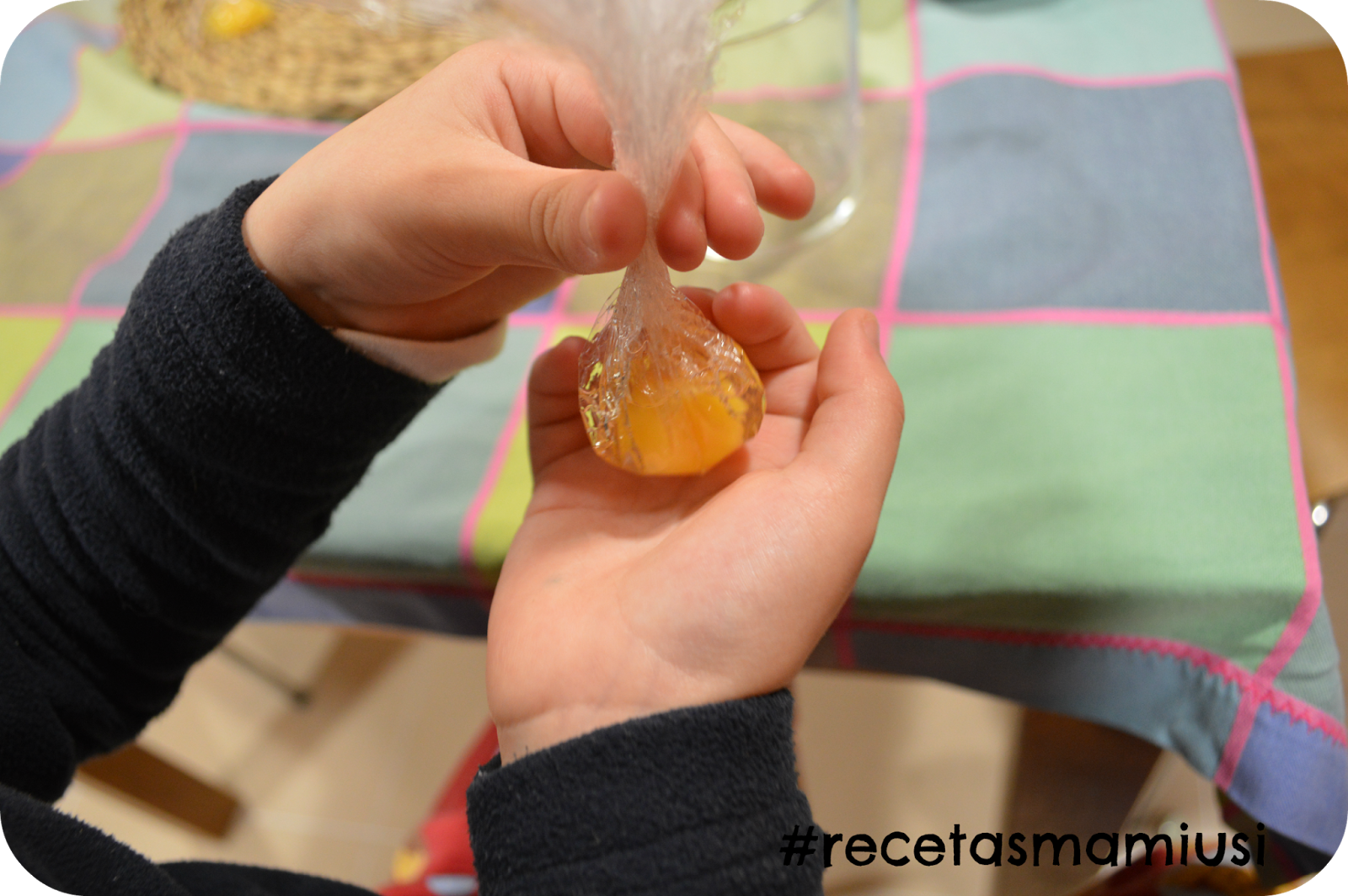 Como colofon de la receta , hacemos los huevos envolviendolos en pequeños saquitos de film transparente que dejaremos en un cazo de agua hirviendo 5 minutos.